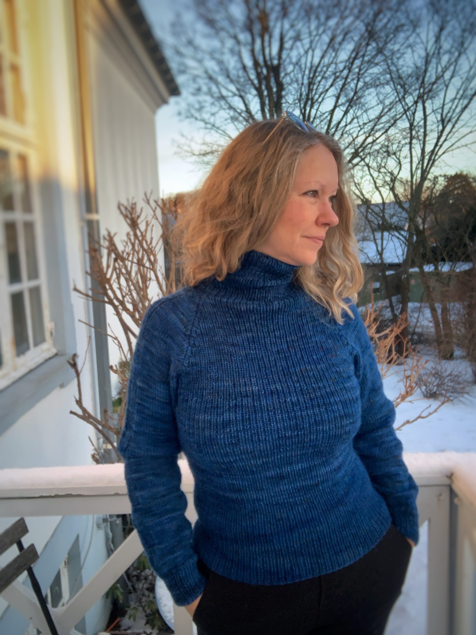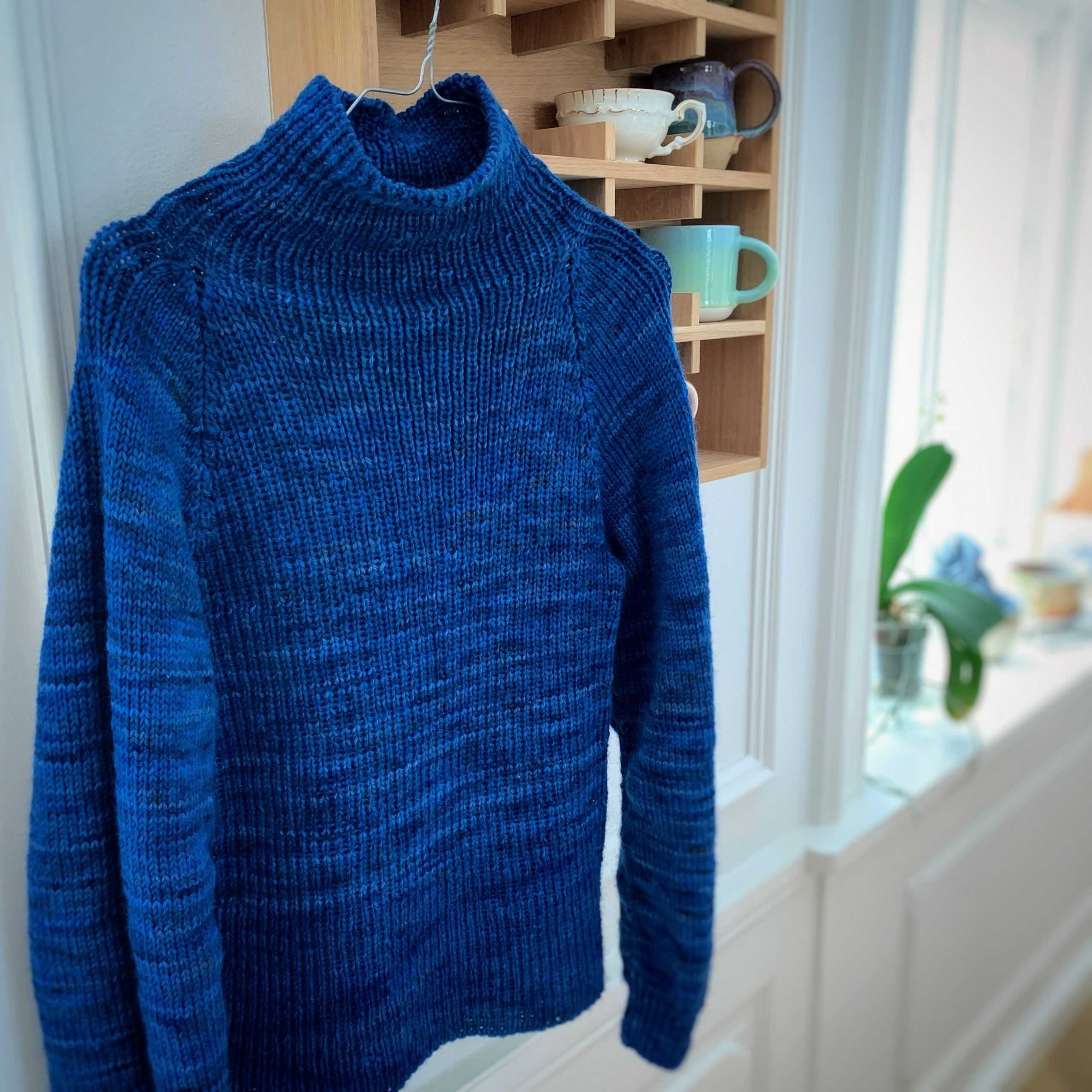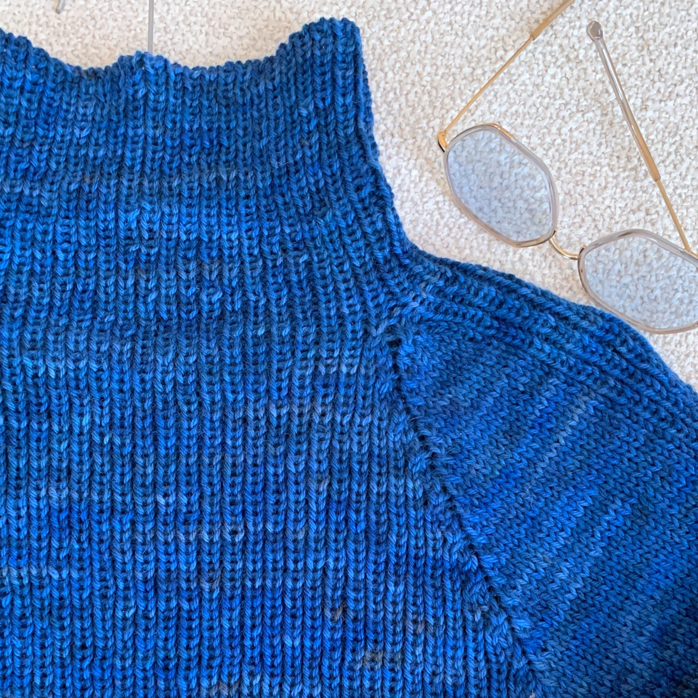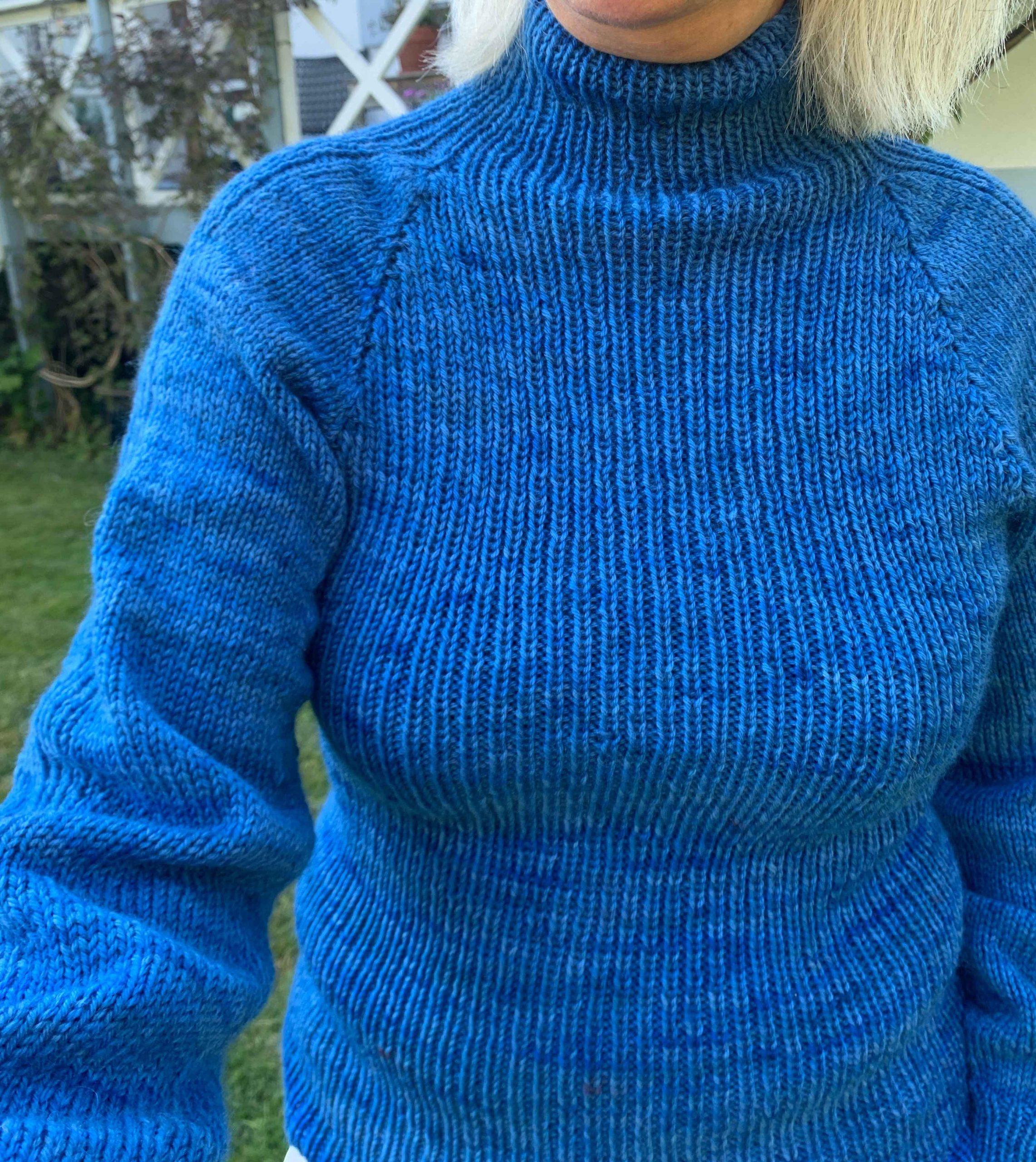 Royal Mile Jumper er en klassisk raglan-jumper med en slank silhuet, høj hals og elegante, lidt posede ærmer. Den strikkes rundt, nedefra og op i håndfarvet, non-superwash, økologisk ren merino. Først strikkes kroppen i rib, så strikkes ærmerne i glatstrik med et rib-tema midt på ærmet. Krop og ærmer strikkes derefter ind på samme rundpind, og der tages ind til raglan over bærestykket. Jumperen slutter med en elegant, høj hals.