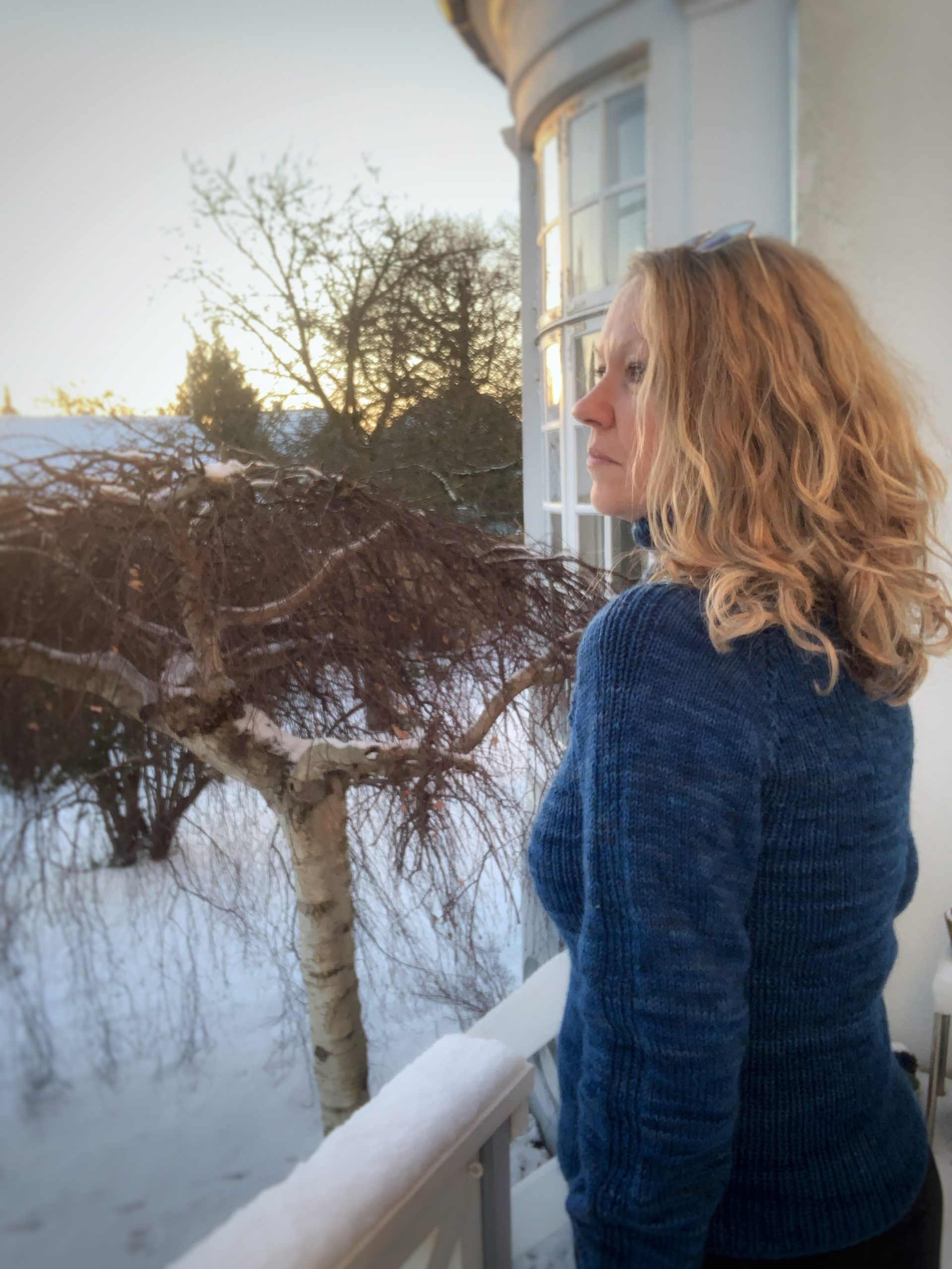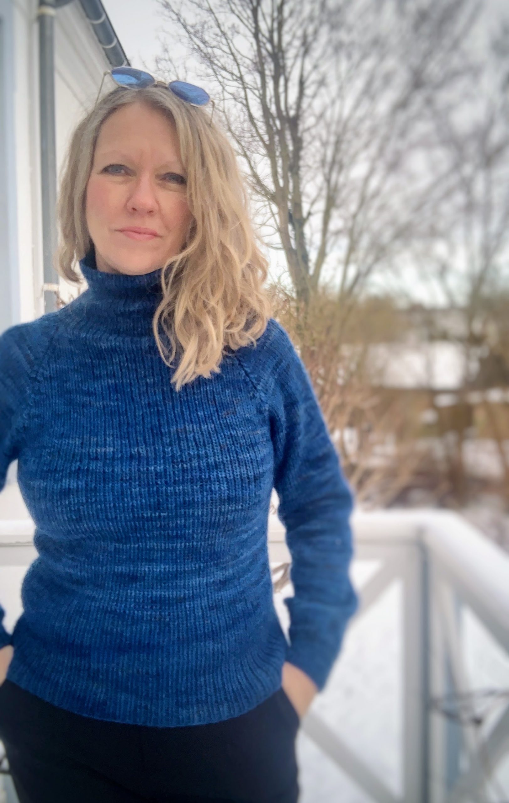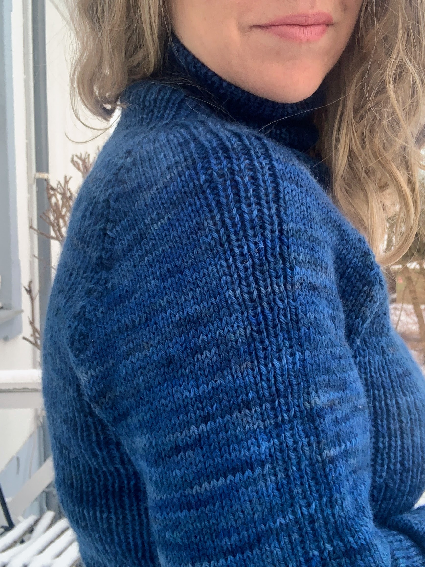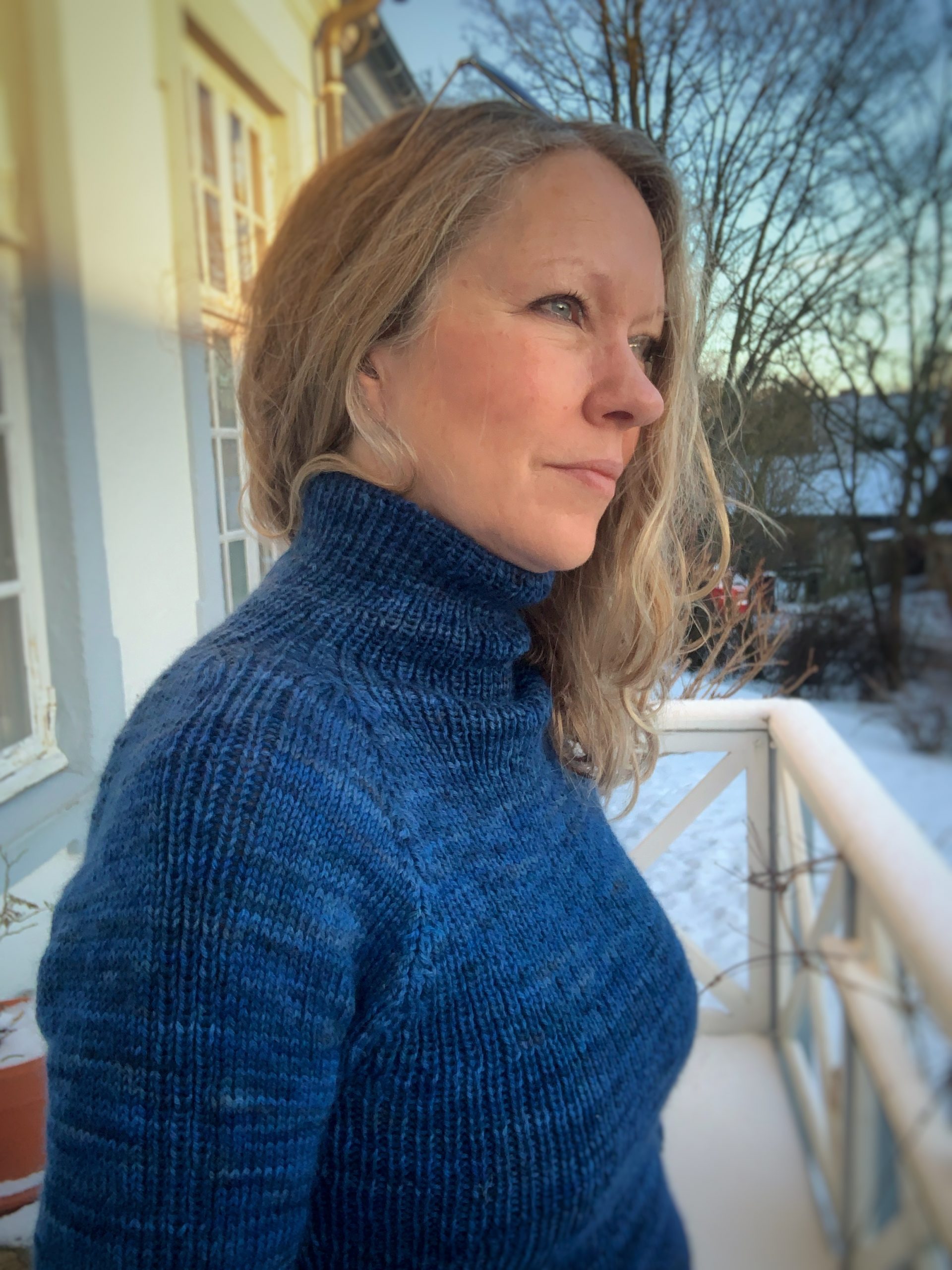 Royal Mile Jumper er en klassisk raglan-jumper med en slank silhuet, høj hals og elegante, lidt posede ærmer. Den strikkes rundt, nedefra og op i håndfarvet, non-superwash, økologisk ren merino. Først strikkes kroppen i rib, så strikkes ærmerne i glatstrik med et rib-tema midt på ærmet. Krop og ærmer strikkes derefter ind på samme rundpind, og der tages ind til raglan over bærestykket. Jumperen slutter med en elegant, høj hals.
